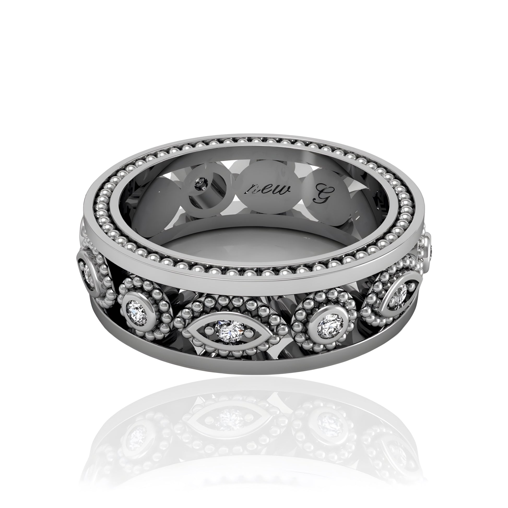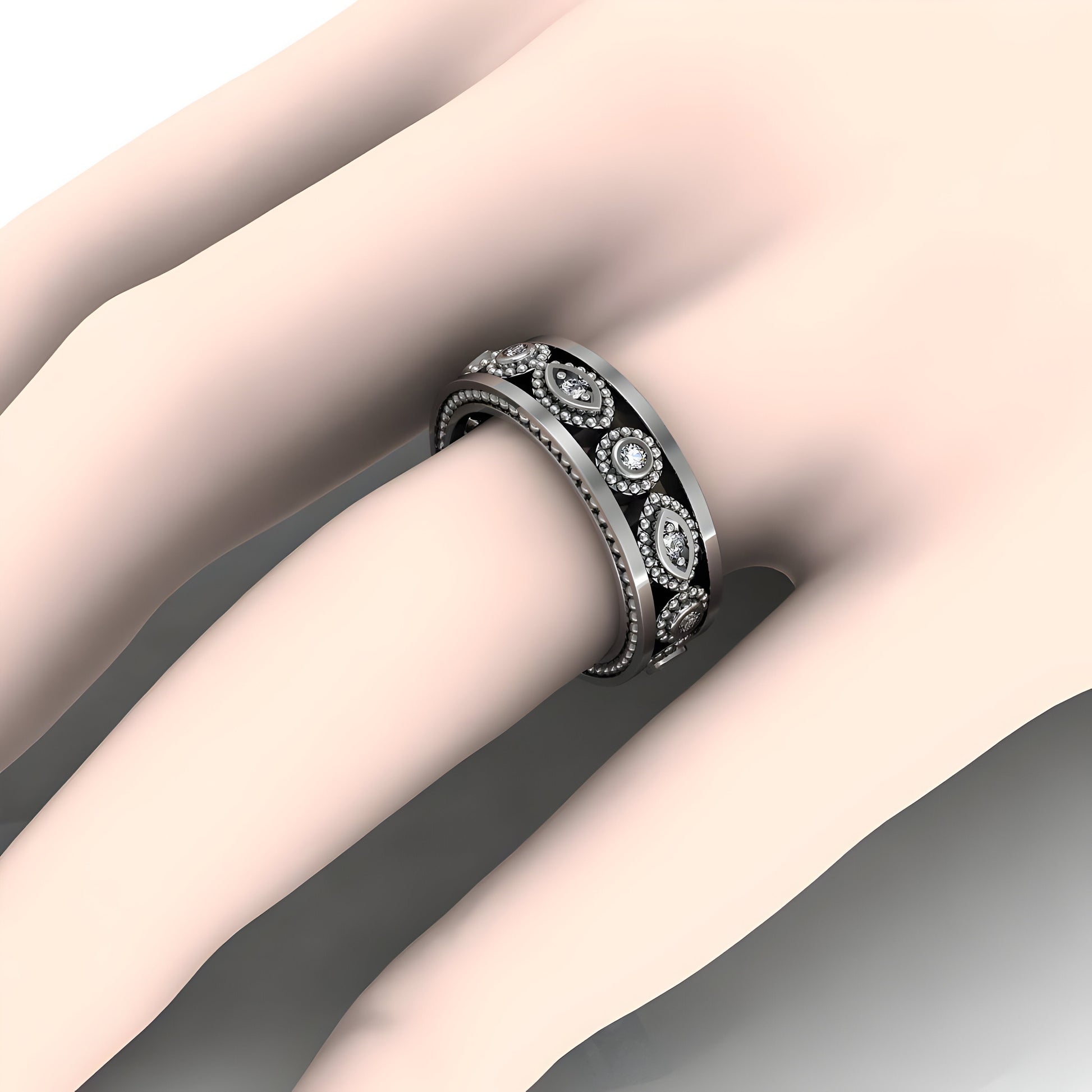 This Milgrain Diamond Band is a stunning piece that features 12 exquisitely set diamonds, each surrounded by intricate milgrain detailing that adds a vintage touch to the modern design. The band is available in gold, rose gold, white gold, and platinum, offering versatility to suit any style. With the diamonds as the focal point, this band radiates elegance and sophistication, making it a perfect symbol of your everlasting love.