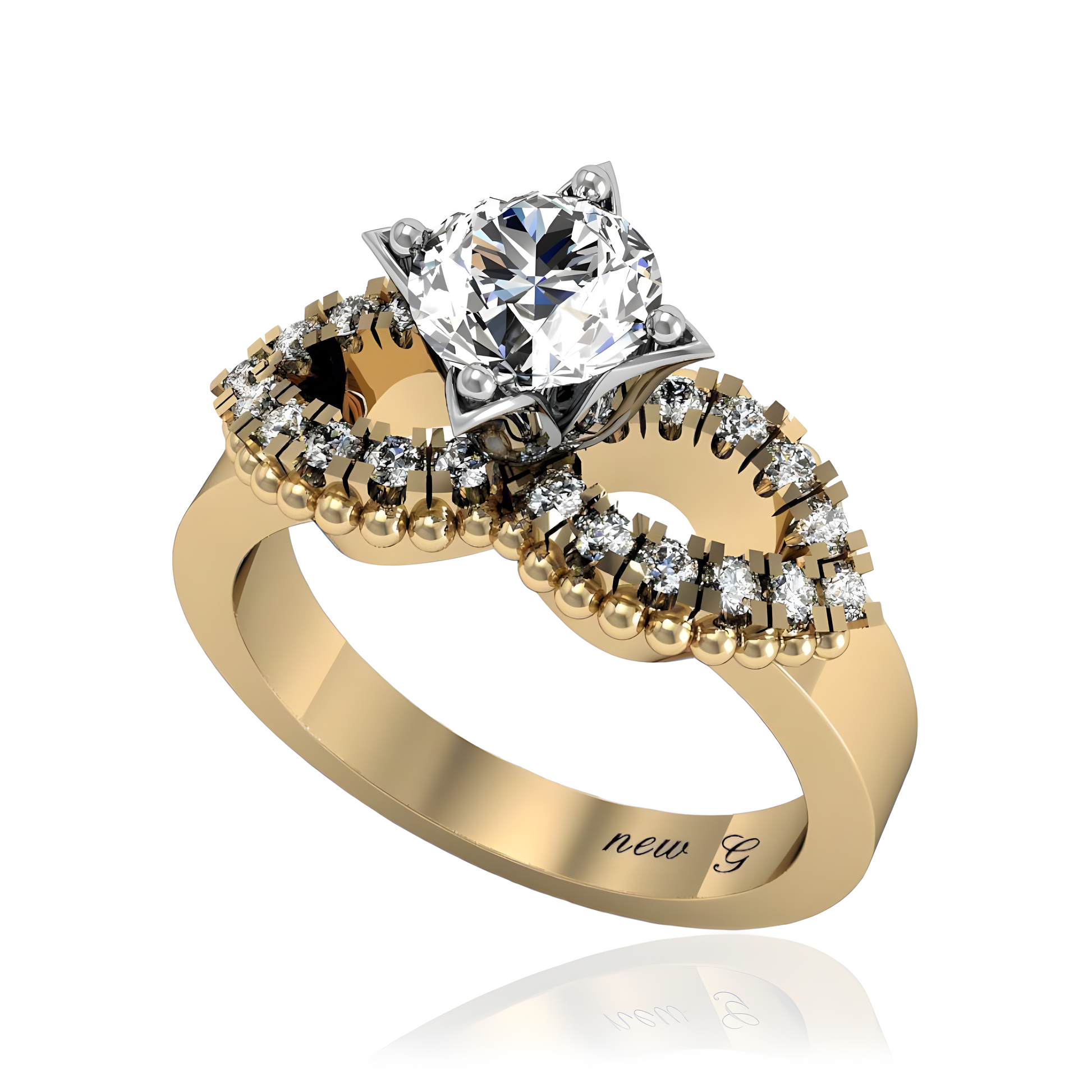 The Infinity Knot Diamond Ring beautifully symbolizes eternal love with its elegant design. The centerpiece diamond is embraced by a stunning loop of pavé-set diamonds, forming an infinity symbol that represents never-ending affection. This exquisite ring is available in gold, rose gold, white gold, and platinum, offering options that cater to individual tastes. Additionally, customers can personalize their choice by selecting between a lab-grown diamond or a natural diamond for the center stone, ensuring that each ring is as unique as the love it represents.