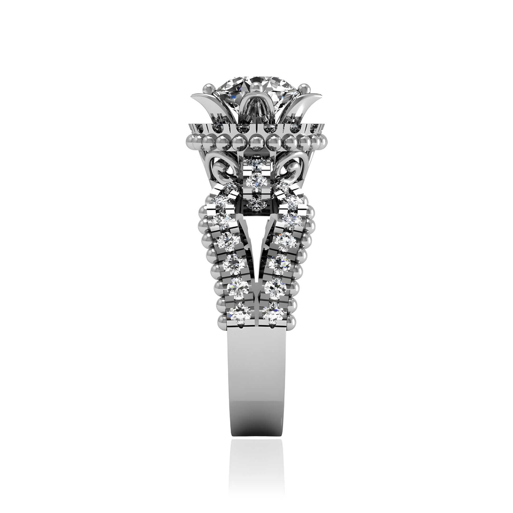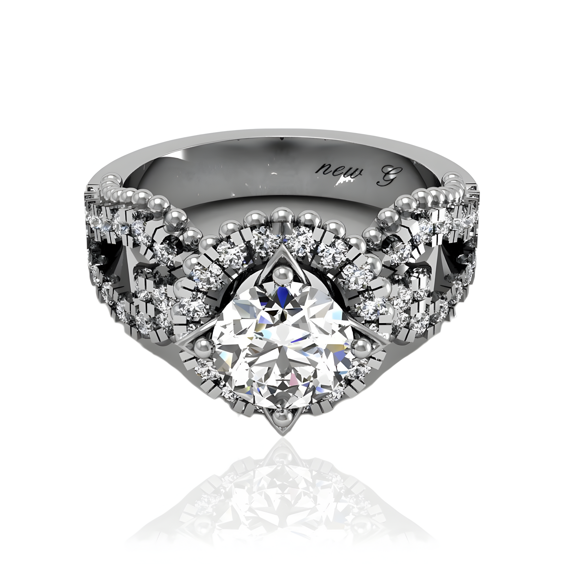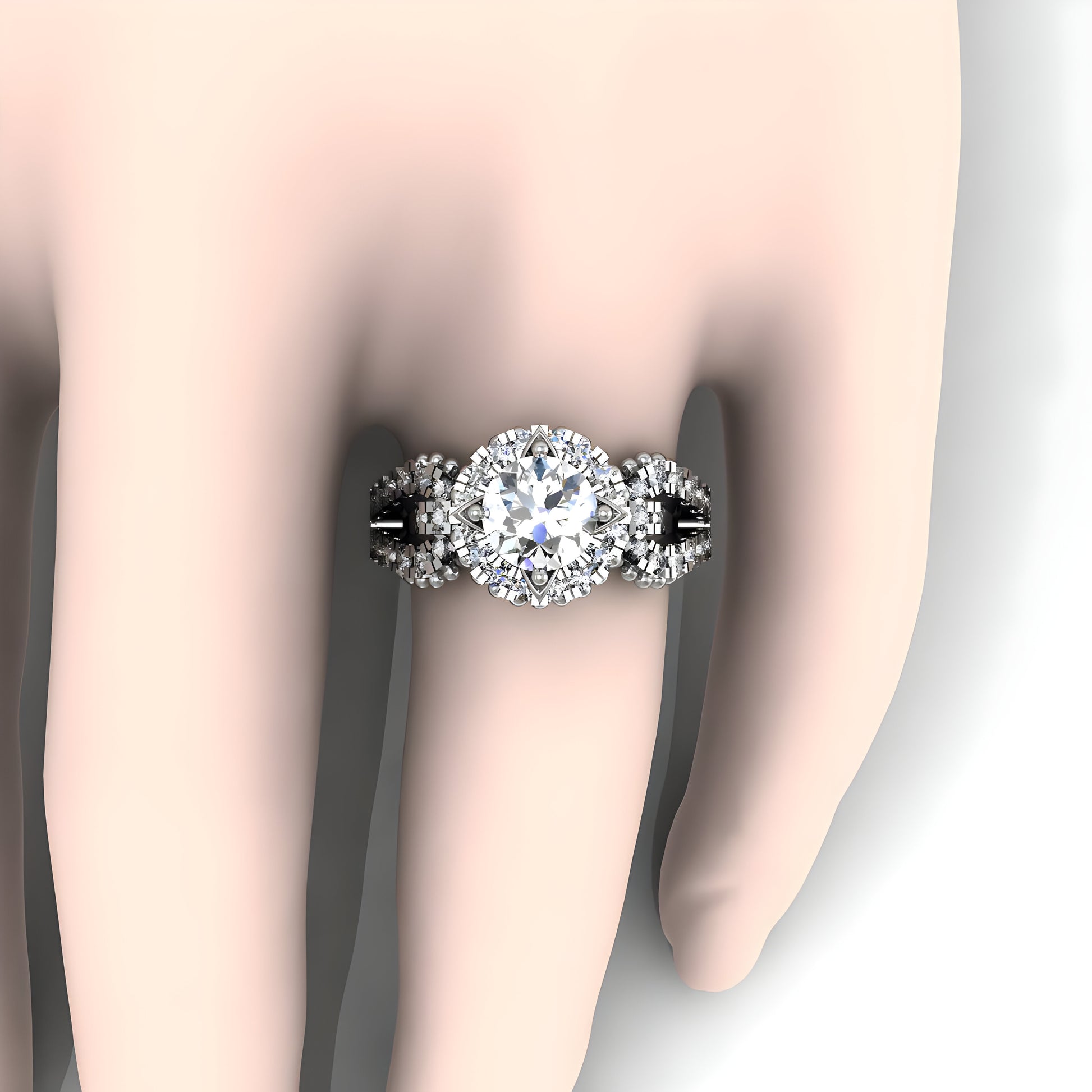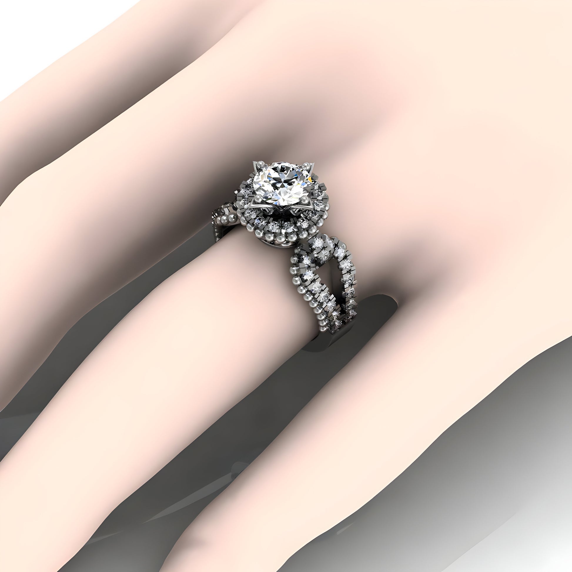This exquisite Vintage-Inspired Double Halo Diamond Ring is a blend of classic elegance and modern flair. The center stone is surrounded by a double halo of sparkling diamonds, enhancing its brilliance and creating a striking visual impact. The split shank, adorned with additional diamonds, adds to the ring’s luxurious appeal. Available in gold, rose gold, white gold, or platinum, this ring is a perfect choice for those who appreciate intricate design and timeless beauty. Customers have the option to select between lab-grown diamonds or natural diamonds, allowing for a personalized touch that suits both ethical and aesthetic preferences.