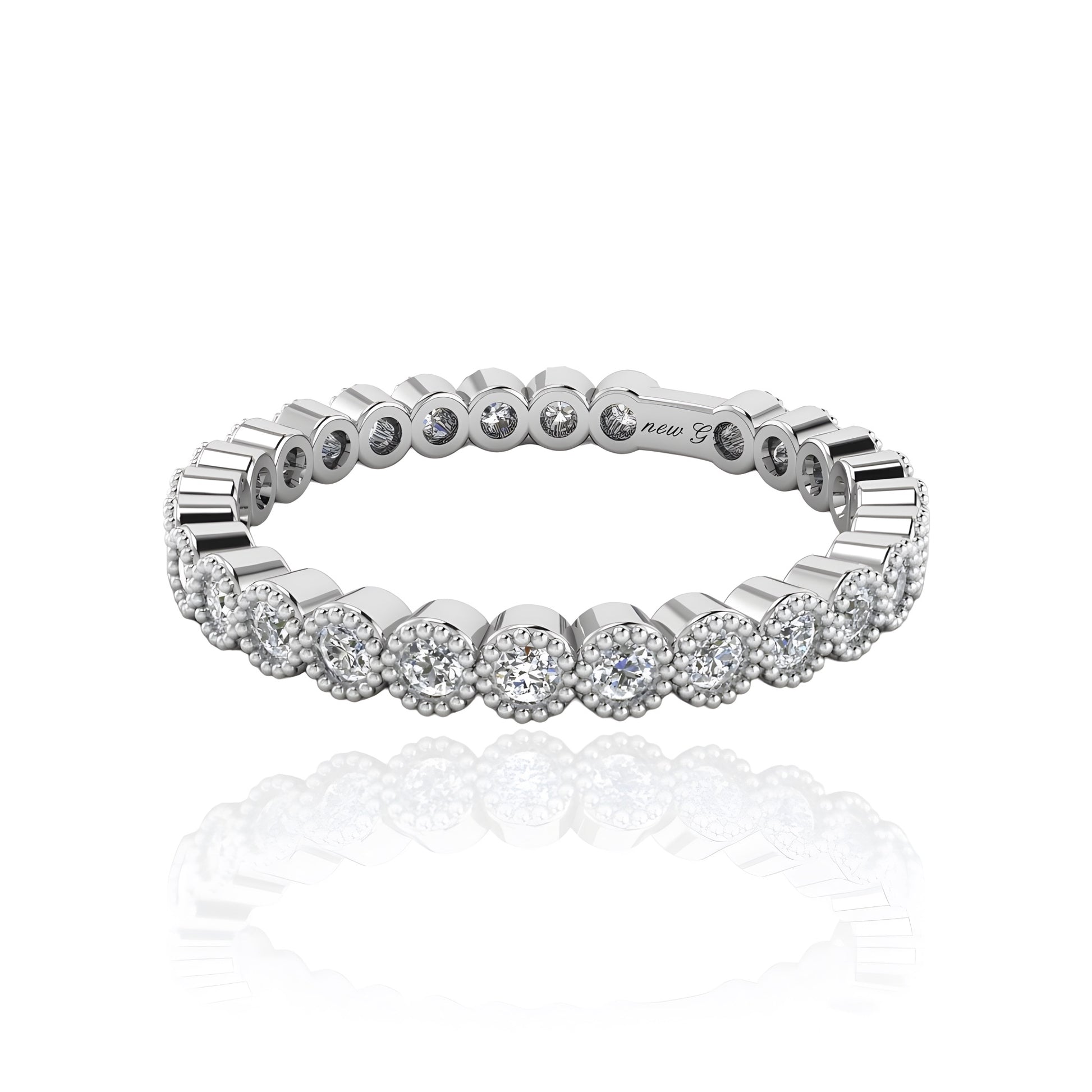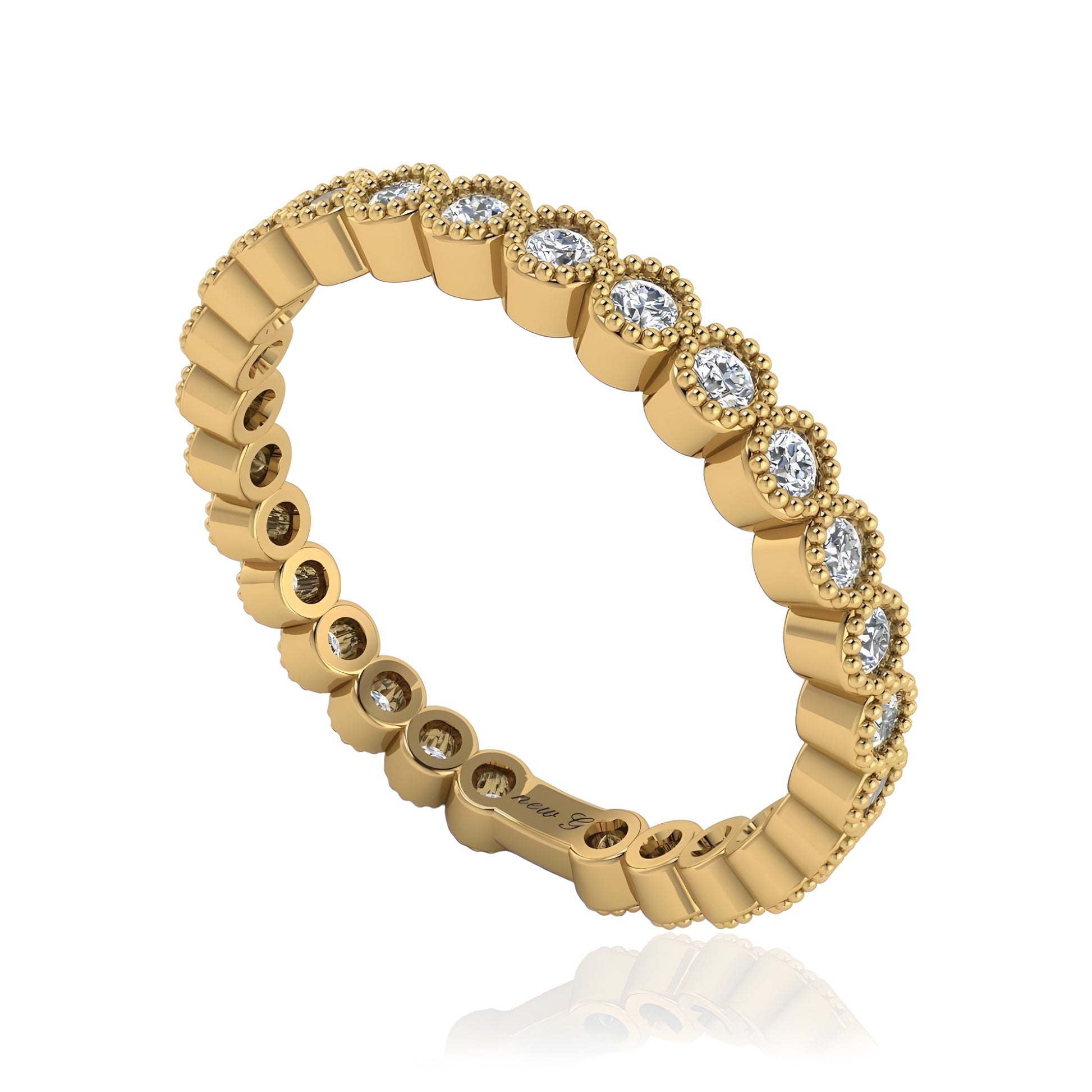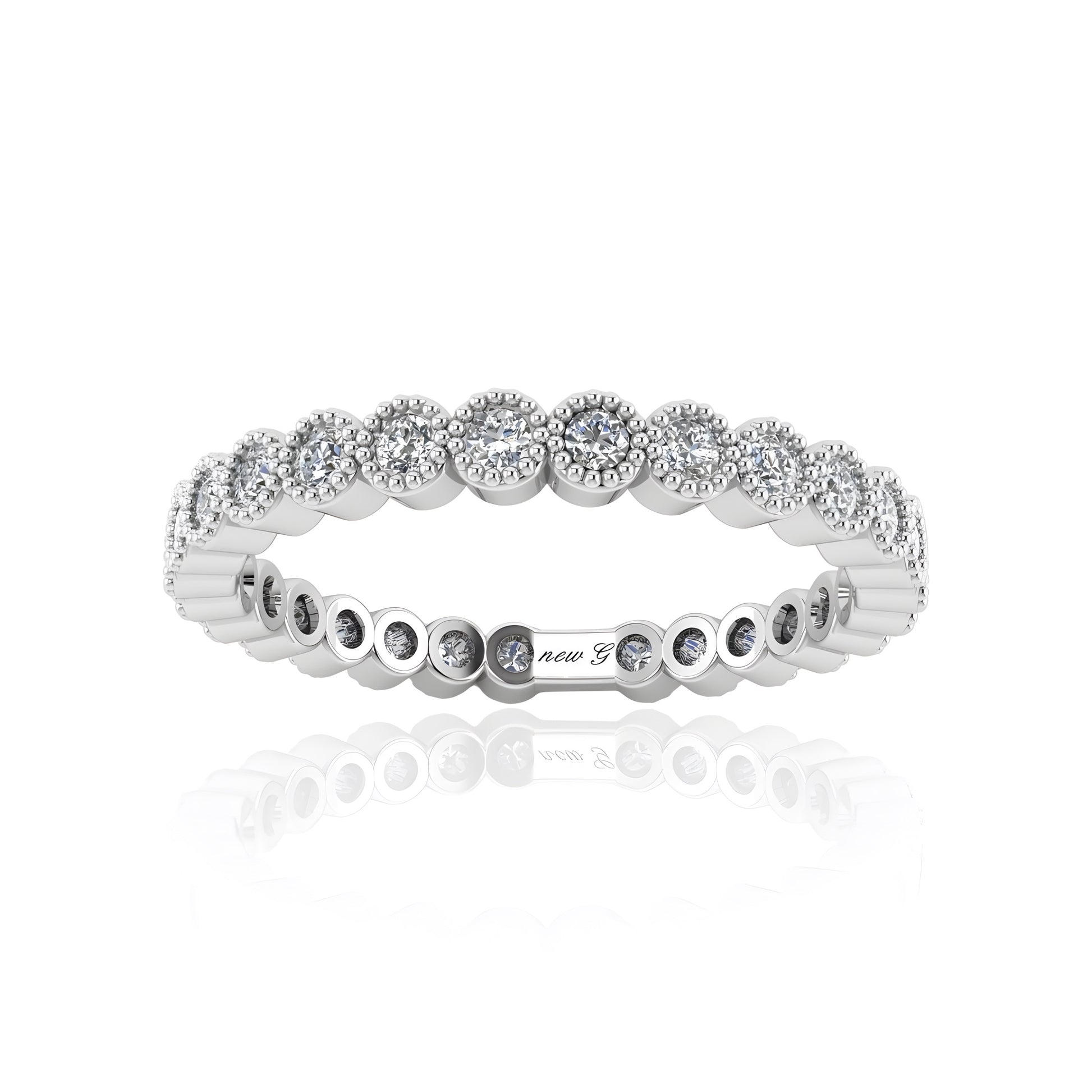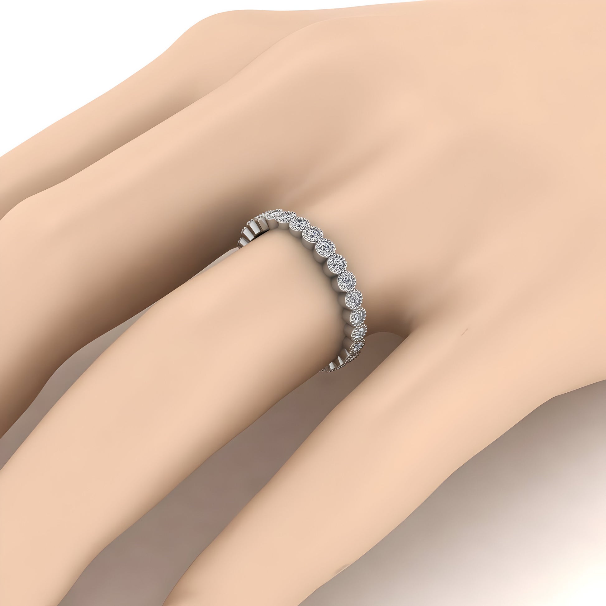 This Beaded Diamond Eternity Band showcases 27 dazzling diamond sidestones set in a continuous loop around the band. The diamonds are accentuated by a delicate beaded border, creating a refined and sophisticated look. Perfect for stacking or wearing on its own, this eternity band is a beautiful symbol of unending love and commitment. Available in gold, rose gold, white gold, and platinum, this ring can be customized to match your personal style.