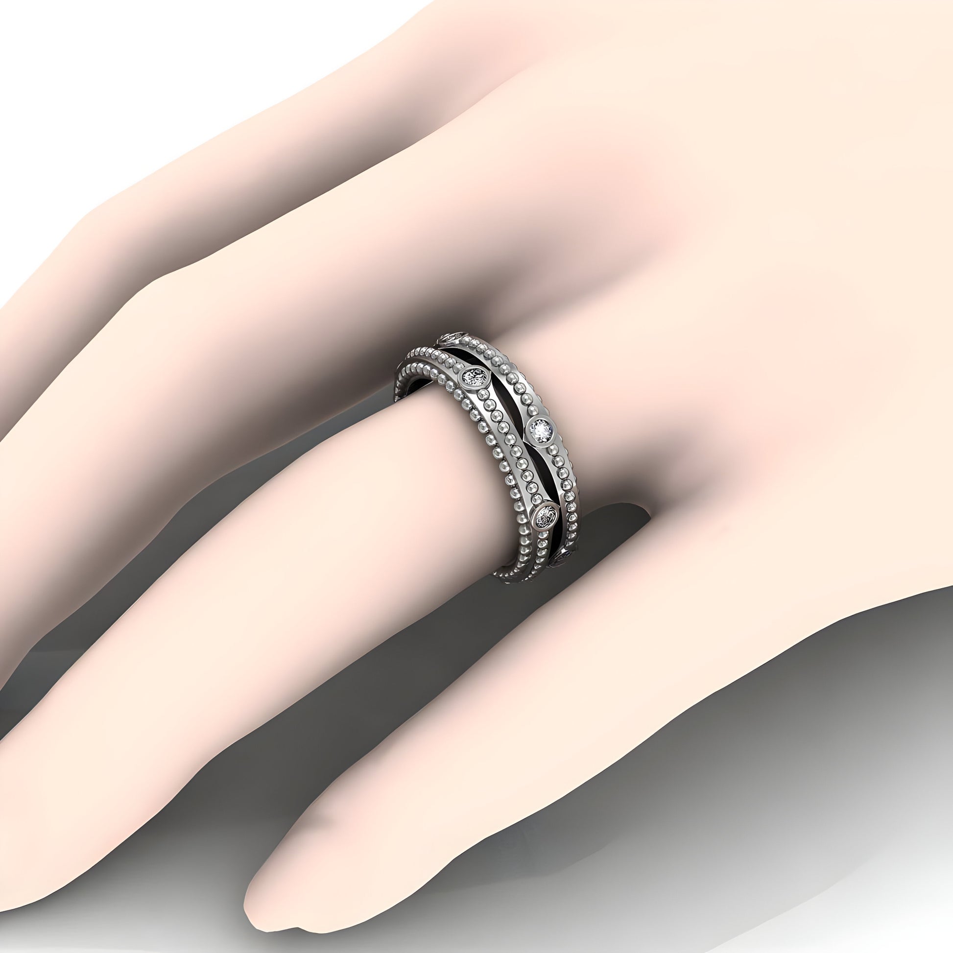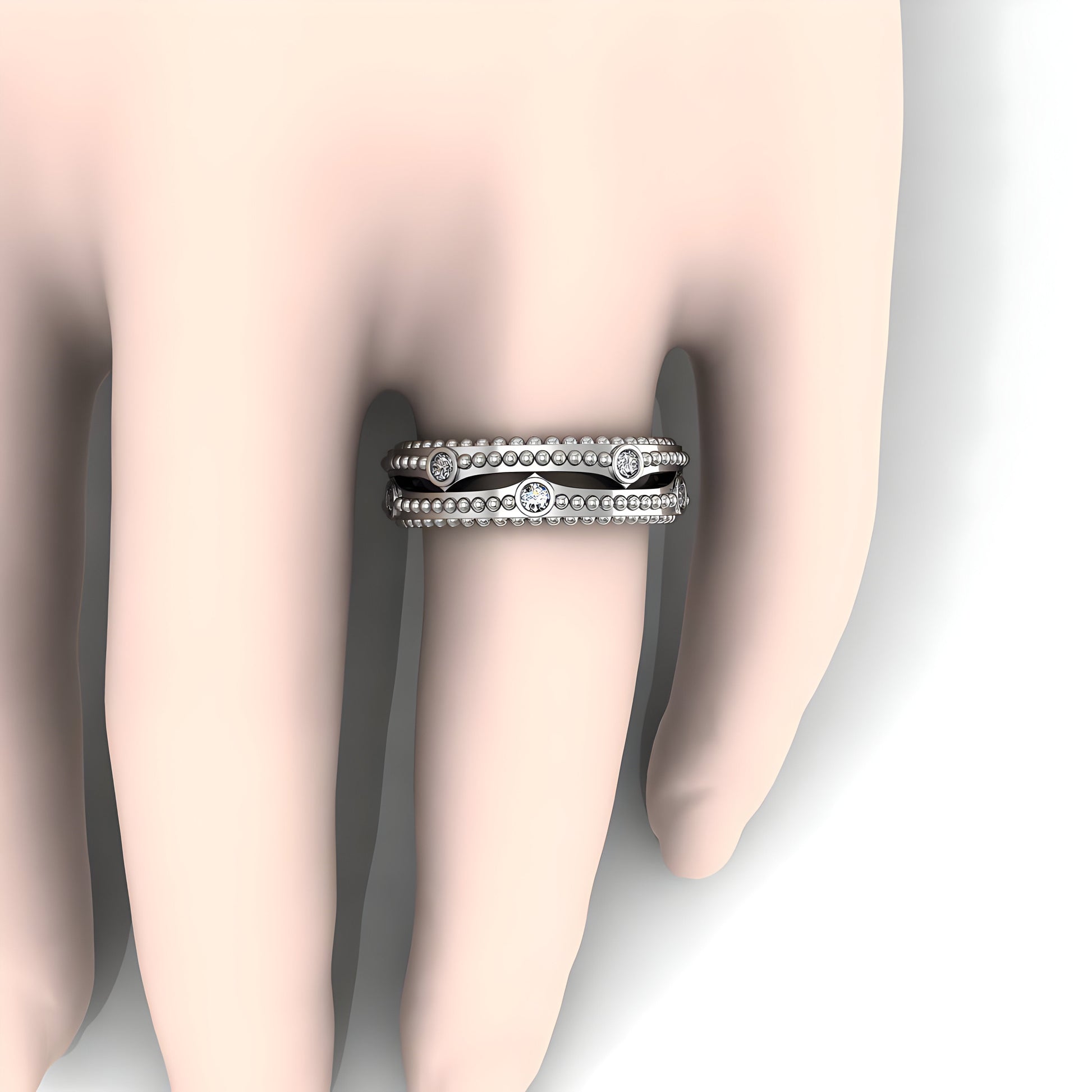 This Beaded Diamond Eternity Band showcases 10 brilliant diamonds, each set in a secure bezel setting that highlights their natural sparkle. The band is adorned with intricate beaded details that add texture and a vintage-inspired charm to the piece. The diamonds encircle the entire band, representing an unbroken circle of love and commitment. This ring is available in gold, rose gold, white gold, and platinum, offering a versatile choice for a timeless look.