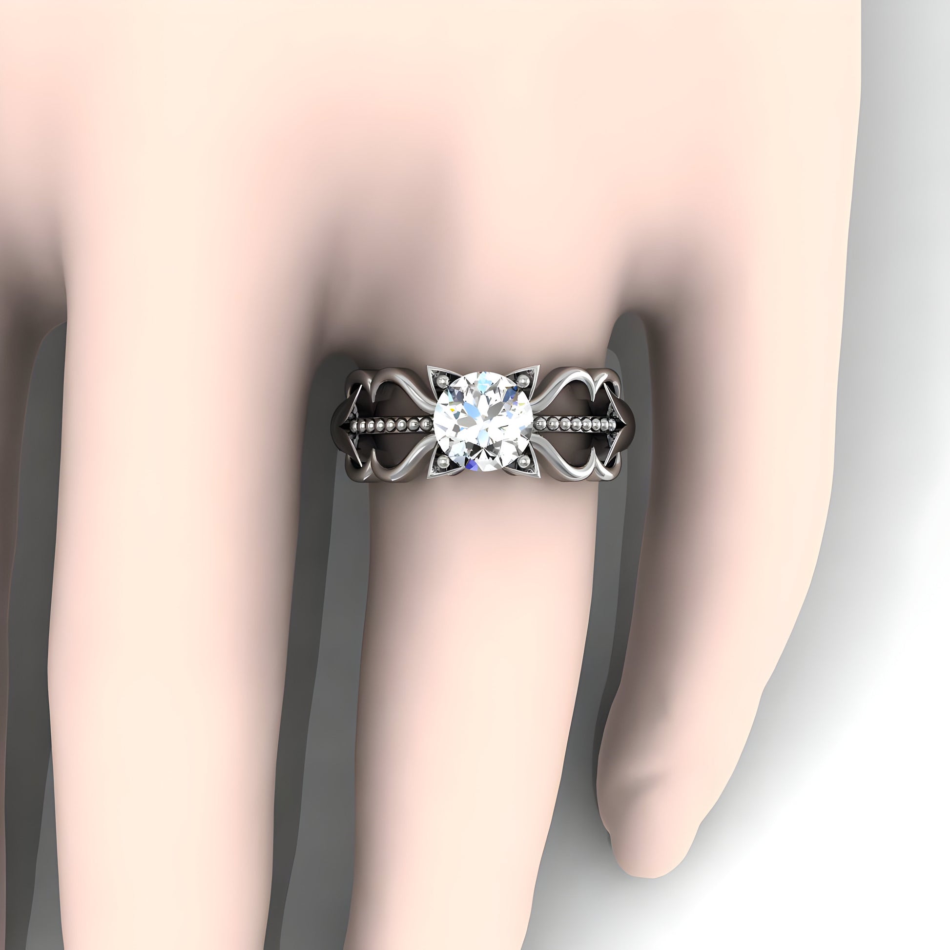 This floral motif diamond ring is a stunning piece that beautifully combines the elegance of nature-inspired design with the brilliance of diamonds. The intricate band is adorned with a delicate floral pattern, leading up to a captivating central diamond. The center stone, which can be customized as either a lab-grown diamond or a natural diamond, adds a touch of brilliance to the overall design, making this ring a perfect choice for those who appreciate both beauty and sophistication.
