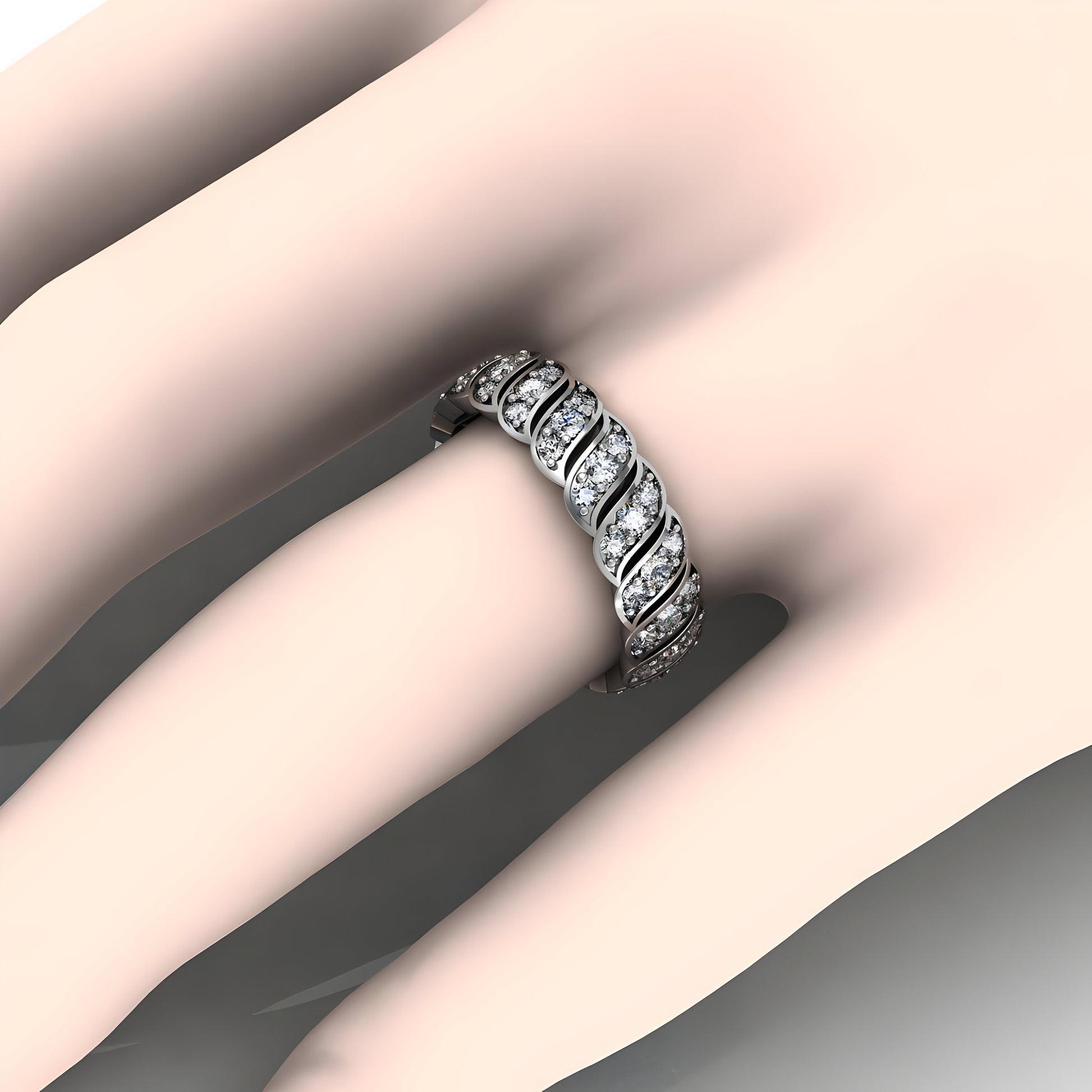 This elegant Braided Diamond Eternity Band is adorned with 57 dazzling diamonds, intricately set within a unique braided design that symbolizes unity and continuity. Each diamond adds a touch of brilliance, making this band a perfect statement of timeless beauty. Available in gold, rose gold, white gold, and platinum, this band is ideal for those seeking a sophisticated and meaningful piece to complement their collection.