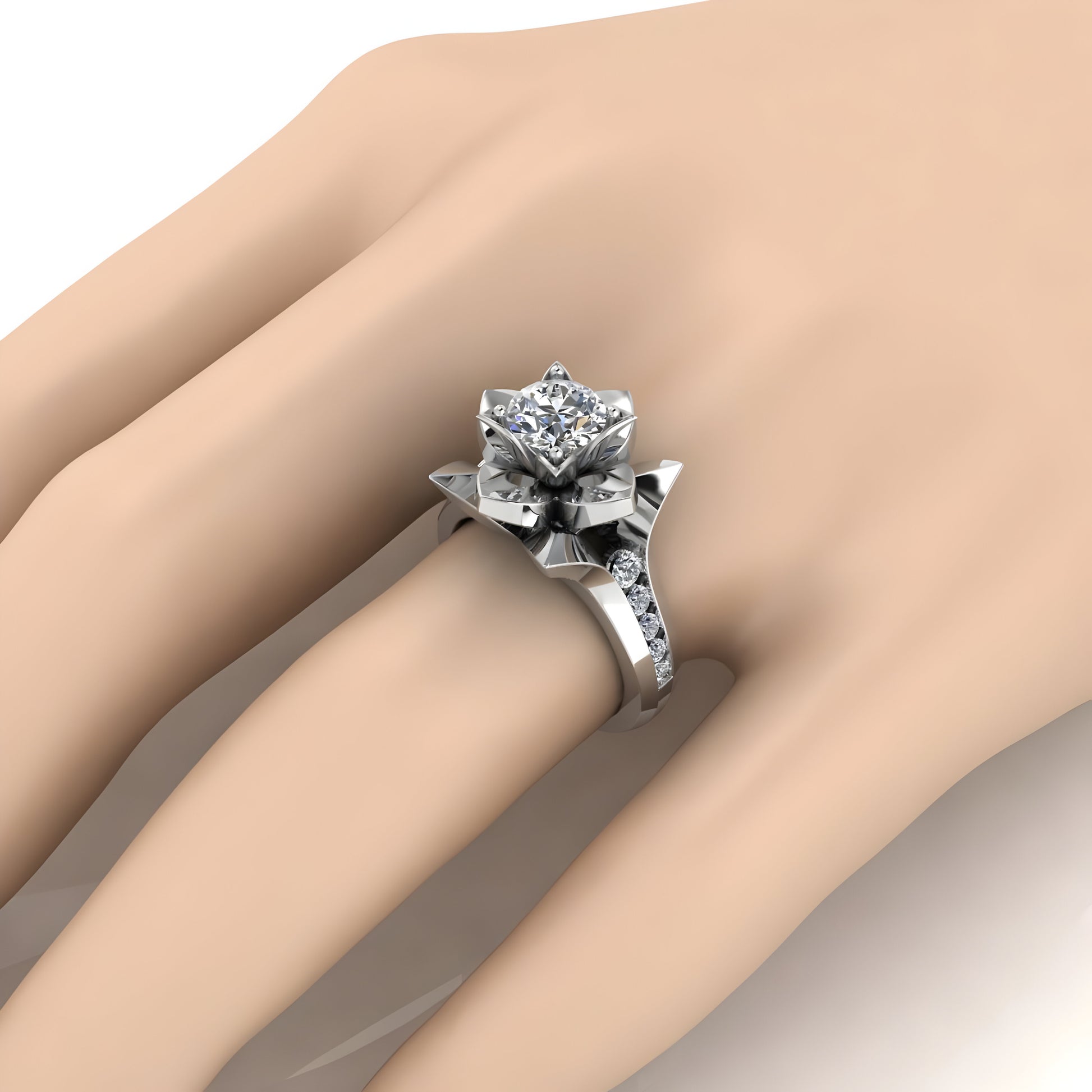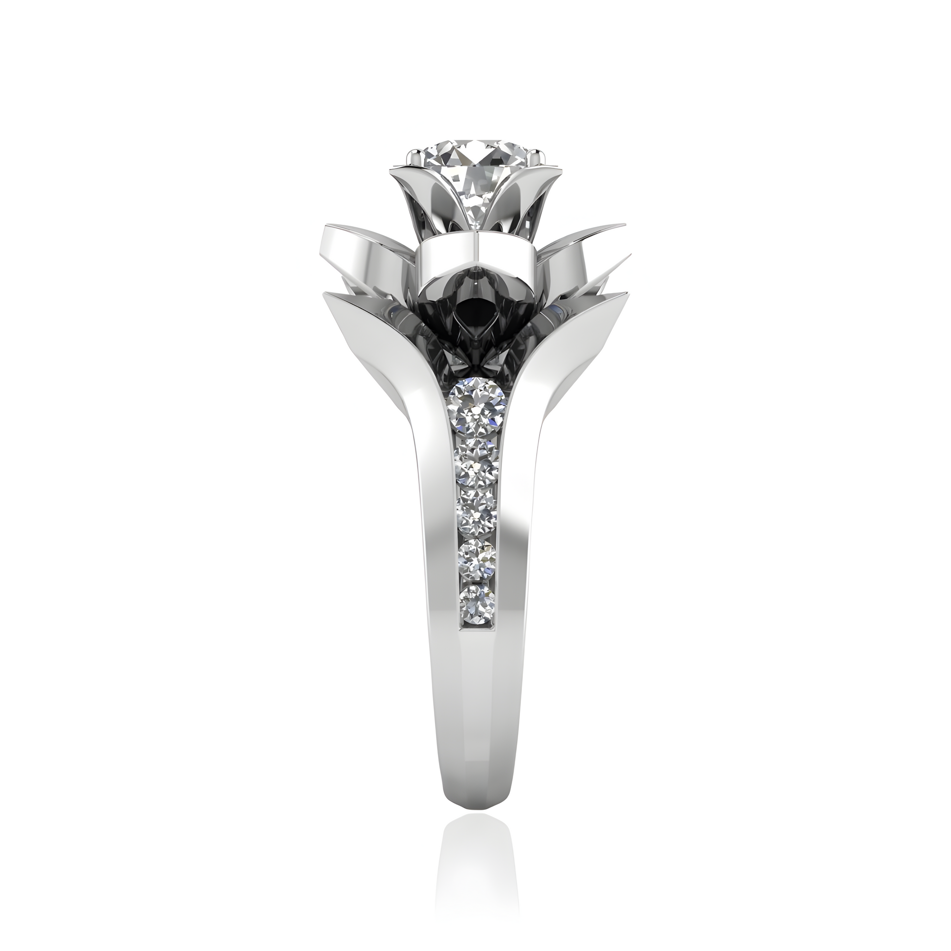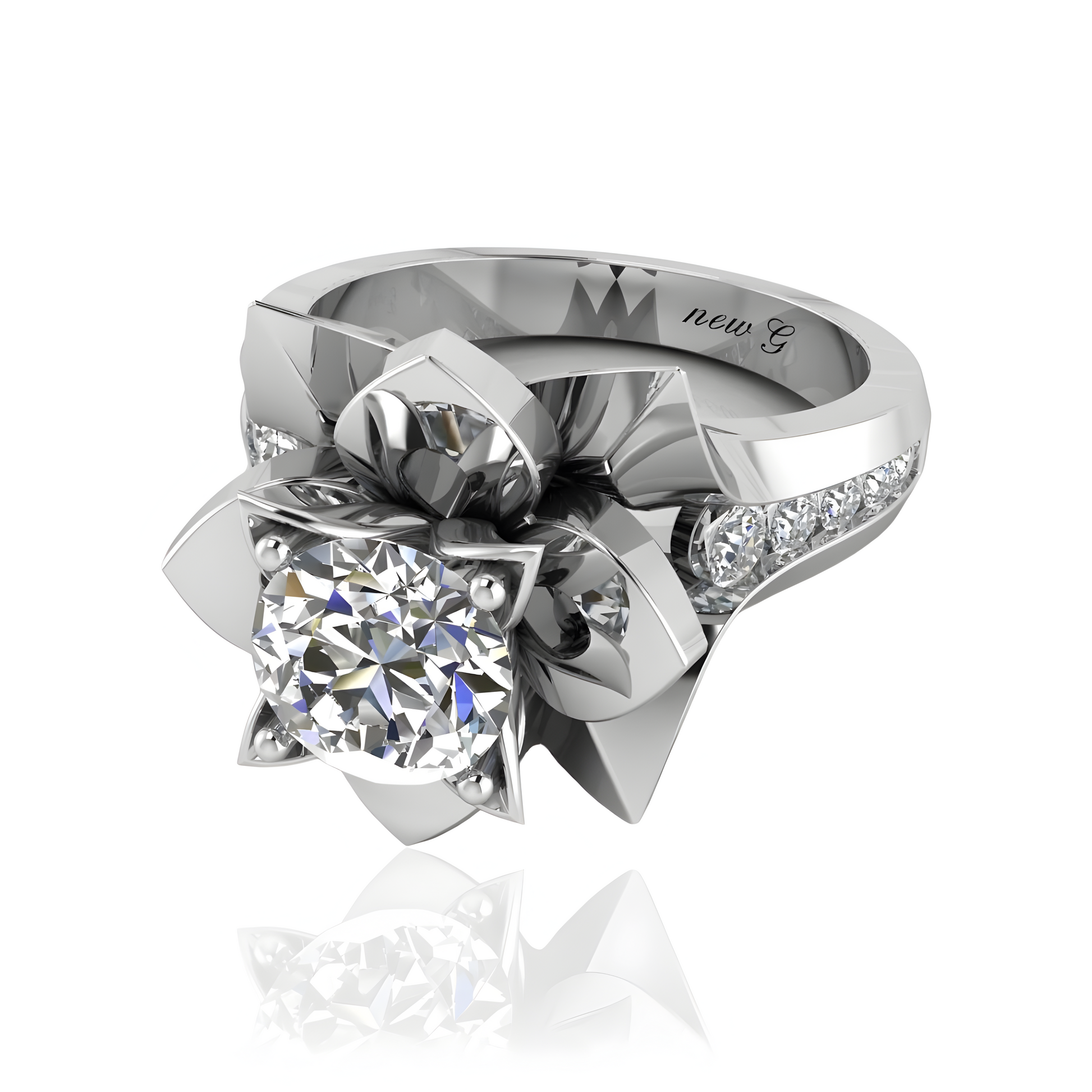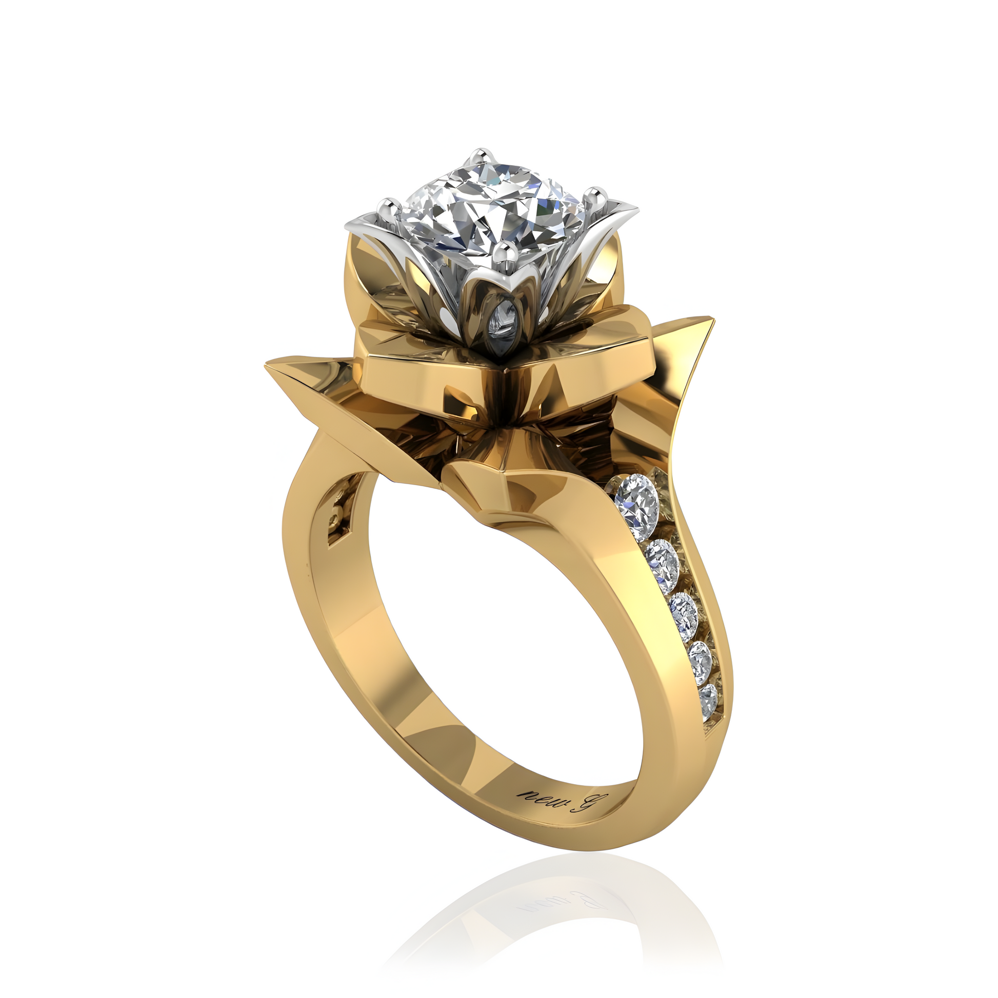 Celebrate the beauty of love with the Radiant Bloom Diamond Engagement Ring. This captivating piece, available in gold, rose gold, white gold, or platinum, showcases a breathtaking diamond at its heart, blossoming from a floral-inspired setting. You can personalize this ring by choosing between a lab-grown diamond or a natural diamond, ensuring that it aligns with your values and style preferences. The band is accented with additional diamonds that enhance the brilliance of the central stone, while the bold, sculptural design of the setting adds a modern edge to the classic elegance of the piece. This ring is a striking symbol of a love that is as unique and vibrant as the flower it emulates.
