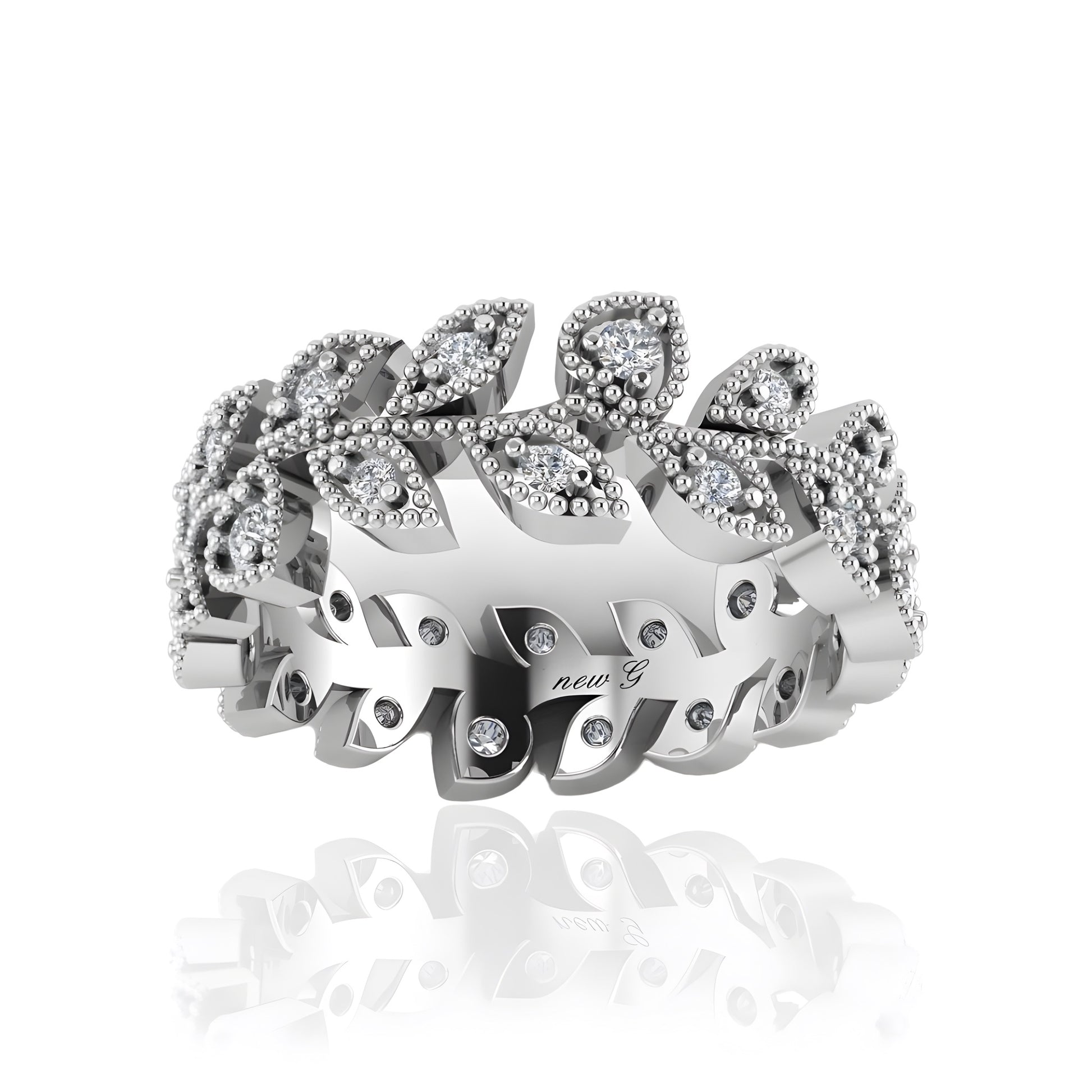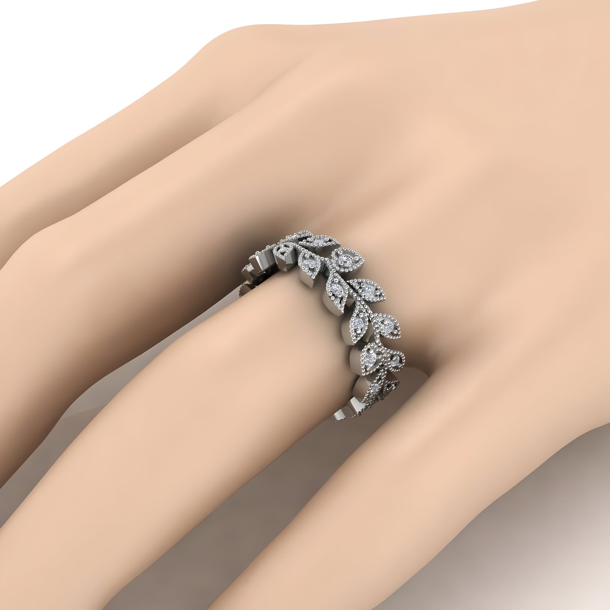This enchanting Leaf-Inspired Diamond Band features 30 dazzling diamonds, intricately set within a leaf motif design. The unique pattern brings a natural elegance to the ring, making it a perfect choice for nature lovers and those seeking something truly distinctive. Available in gold, rose gold, white gold, and platinum, this band radiates a timeless charm.