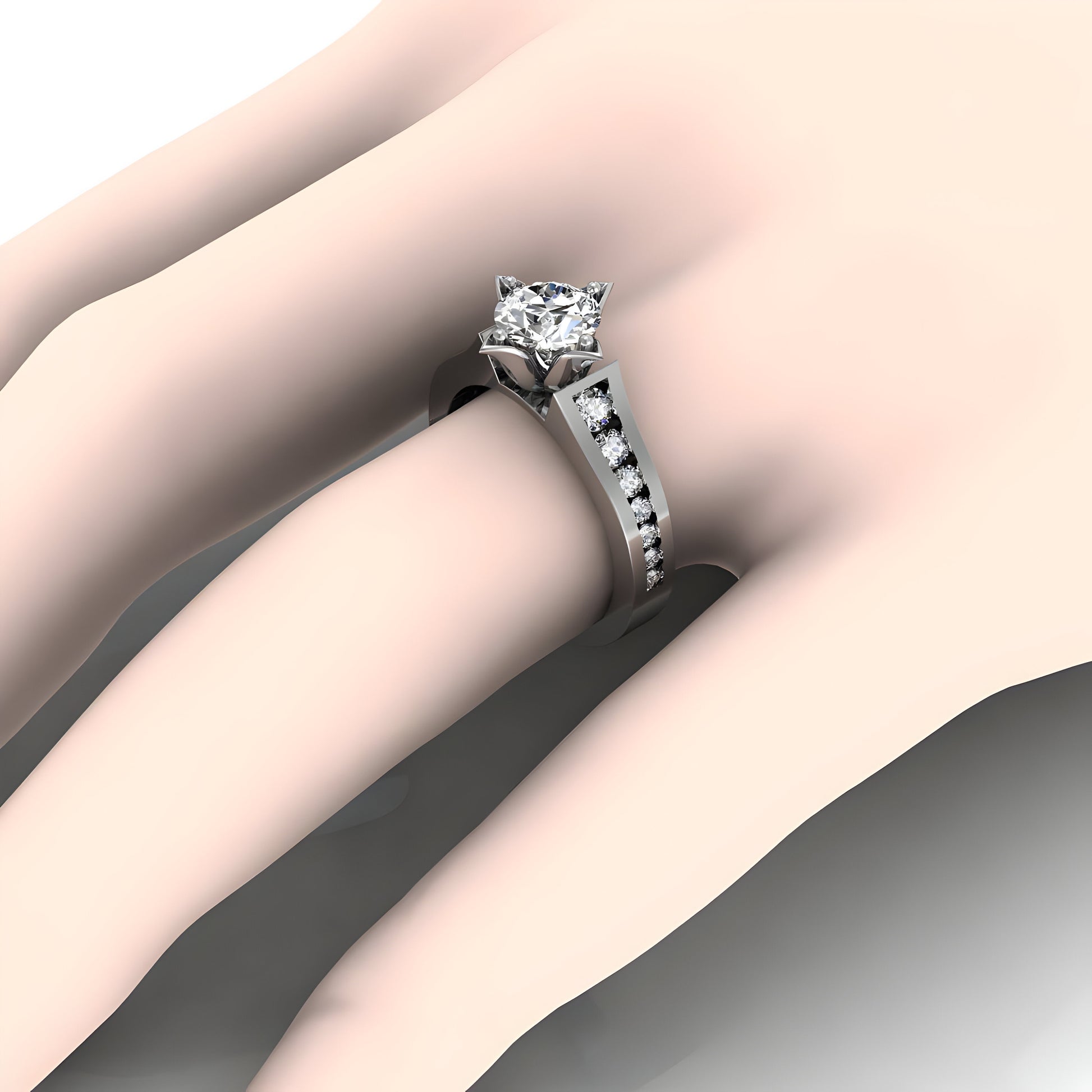 Available in luxurious finishes of gold, rose gold, white gold, or platinum, this ring allows you to personalize your choice to match your style. You also have the option to select between a lab-grown diamond or a natural diamond for the center stone, ensuring that this ring is a true reflection of your values and preferences. A perfect blend of contemporary design and classic elegance, this ring is ideal for any special occasion.