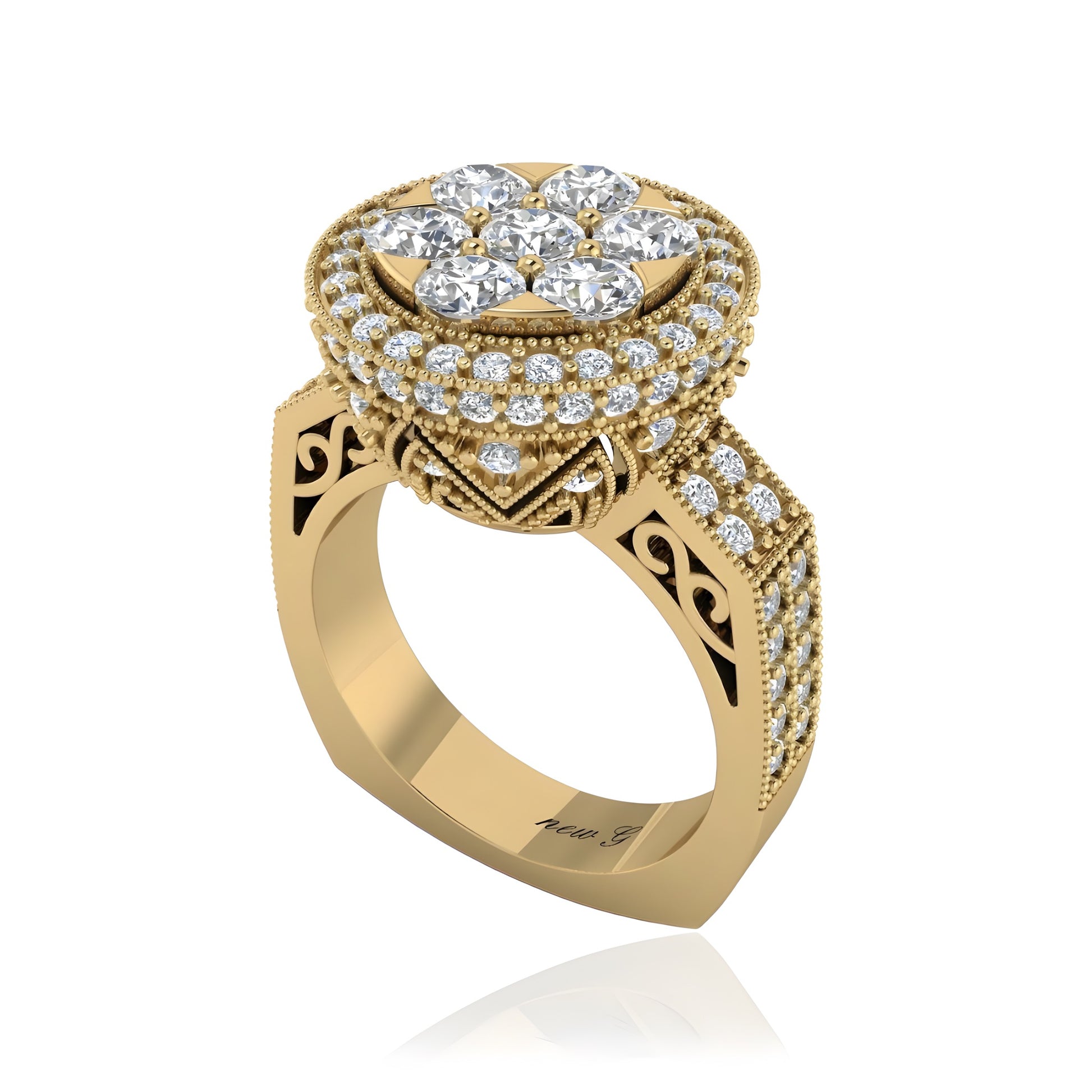 The ring's vintage-inspired design is complemented by ornate filigree and beaded accents, giving it a timeless appeal. Available in gold, rose gold, white gold, or platinum, this ring can be customized to reflect your unique style. Whether worn as a statement piece or as a symbol of a special commitment, this ring exudes luxury and sophistication.