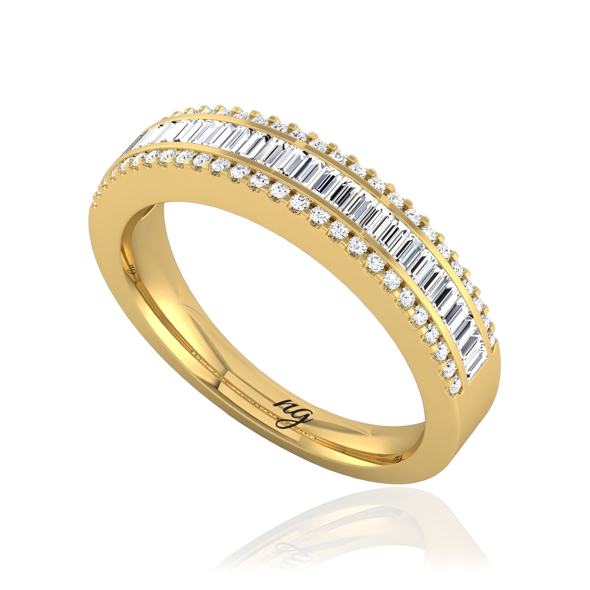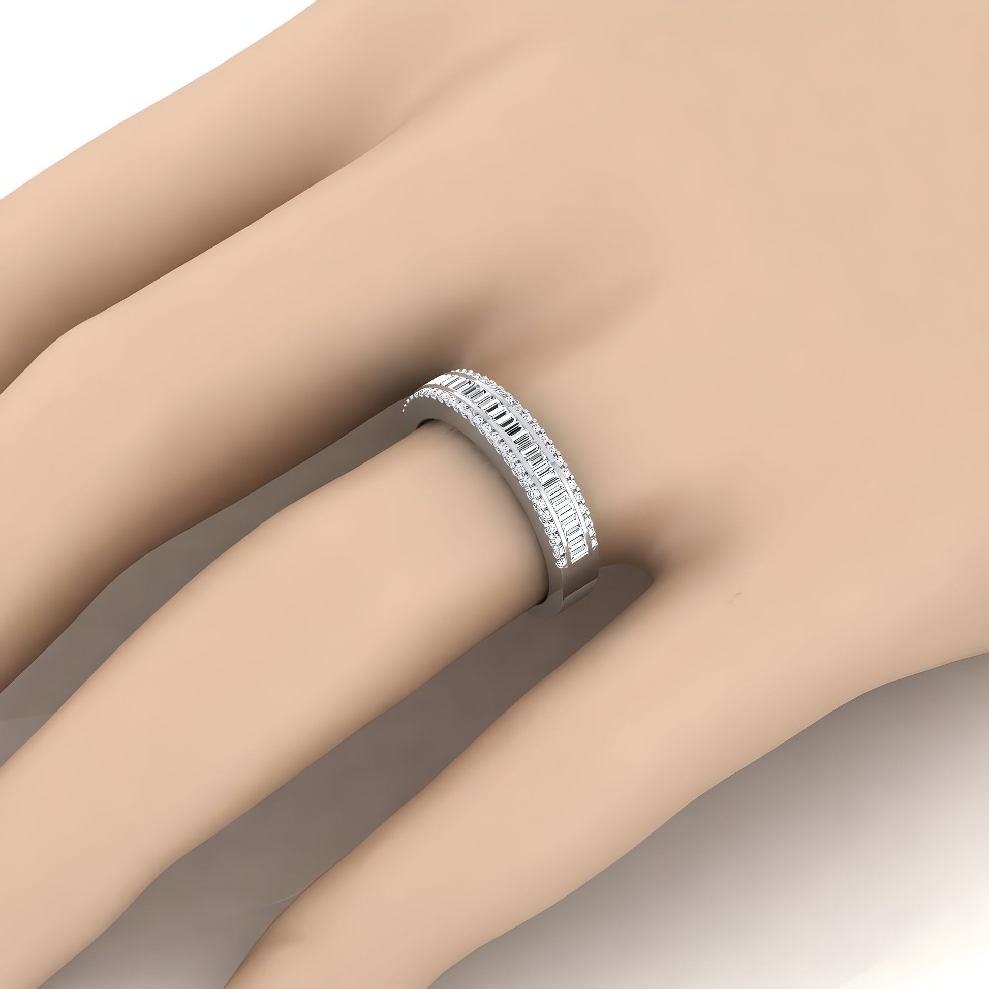 This stunning Baguette & Round Diamond Band features an exquisite arrangement of 70 diamonds, blending the brilliance of baguette and round cuts for a unique, timeless design. Perfect for those seeking a band that stands out with elegance and sophistication. Available in gold, rose gold, white gold, and platinum, this band is a perfect symbol of everlasting love.